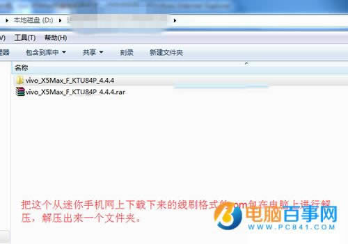 1:把上面下载下来的刷机包在电脑上进行解压,如下图,然后解压出来有两个文件夹,文件夹里还有两个文件夹,一个文件夹里放的是rom文件, 一个文件夹里放的是刷机工具。