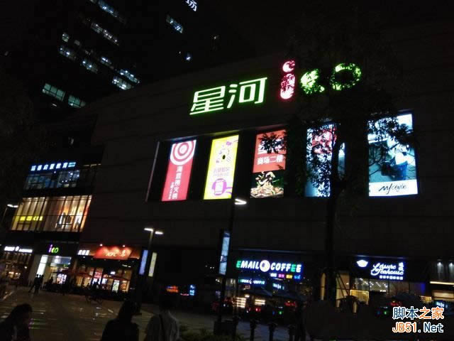 本组对焦点在位置居中的灯箱,故而两者的测光都把墙面拍得很黑。相比之下,Note4X因为ISO高画面略微亮一些,这从地面的颜色可以看出来,但灯箱、店面招牌等发光体的表现便有些过亮发白,不如N5。