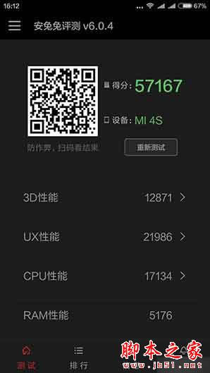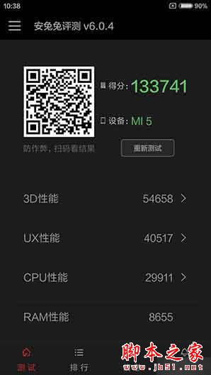 小米5(高配版)和小米4S安兔兔跑分数据